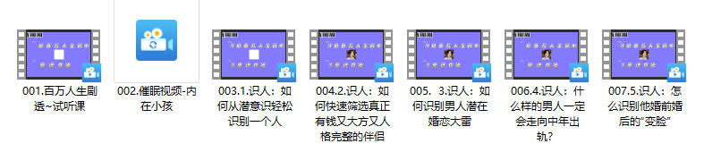 识人洞察他人,看清他人,从而搞定你想搞定的人,识人系列的第一节课是如何从潜意识轻松识别一个人,我们的潜意识识人系列是教你怎么样去分析一个人的潜意识人格,拆解他的潜意识行为轨迹,从而揭露他的人格底色轻松的识别他是一个什么样的人,让你始终掌握主动权,让你通过对方的一句话一个小行为去识别对方的需求和人格底色是什么?让自己在婚恋中在职场中,在人际关系中一直有上帝视角。如果你能够把我们这个系列学完,你对潜意识识人能力的提升,就能帮你搞定。你想搞定的人和事儿,一你可以轻易的识别别人的伪装,让他把自己真实的需求暴露在你面前无所遁形,从而按照你的需求采取有力的行动。二你能看透对方的潜意识需求,一双火眼金睛的眼睛,让他无法逃开你的吸引力。你会发现原来暴躁的婆婆,其实是纸老虎原来挑剔的老板,只是为了他的安全感而不得已的释放。看起来精致完美的精英男也能被你挖出痛点,挖出痛处,变成追着给你钱和爱的好男人。